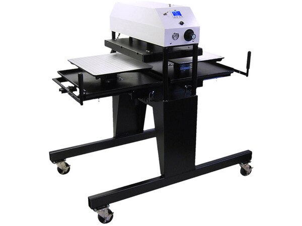 QUICK LOOK: The 394 Shuttle Press is a high production, twin station heat transfer press. It is available in two different heater block sizes: 16" x 20" and an oversized 20" x 25". Designed for optimal pressing efficiency in a demanding heat transfer production environment, the 394 Shuttle Press removes operator inefficiency and pressing delays in a compact and user-friendly design. By utilizing two shuttling tables, the press allows for constant pressing, and the operator is able to load and unload work while the opposite table is being pressed. The next set of work is immediately available for pressing after the prior cycle, therefore minimizing both operator and press idle time.