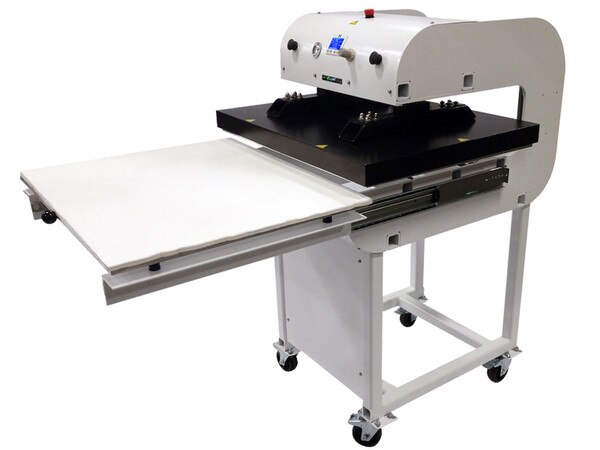 The DK32AP is the ideal press for meeting 24"-width printer output and other oversized transfer requirements that are far larger than what 20x25 models can accommodate, with a price tag a fraction of the cost of the MaxiPress line. Capable of perfectly pressing fabric, complex garments, metal, wood, ceramics, glass, and more... The DK32AP is the industrial-grade large-format solution between smaller platens and the MaxiPress